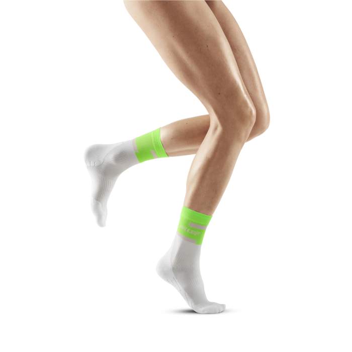 Damskie skarpety kompresyjne sportowe CEP The Run 4.0 krótkie limonkowo-białe
