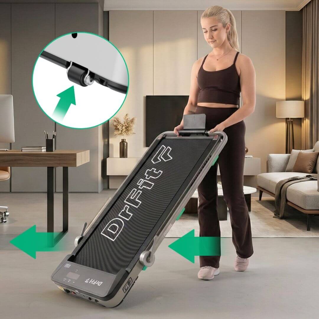 DrFit to bieżnia do chodzenia i biegania, zaprojektowana tak, by działać od razu po złożeniu, niezależnie od pogody, pory dnia czy nastroju.