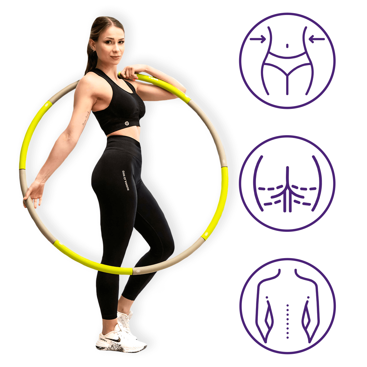 • Wzmacnianie mięśni brzucha, pleców i bioder – trening z hula hop DrFit angażuje wiele grup mięśniowych, zwłaszcza w okolicy bioder, pośladków, pleców i brzucha. Regularne ćwiczenia pomagają budować siłę, ujędrniać ciało oraz poprawiać postawę.
