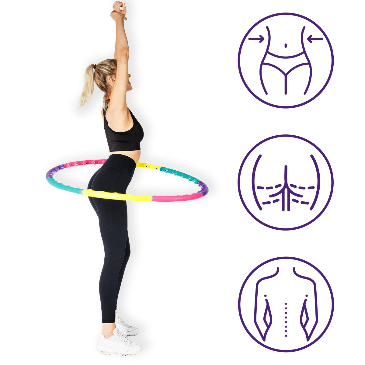 Odkryj magiczne działanie kolorowego hula hop z masującymi wypustkami.