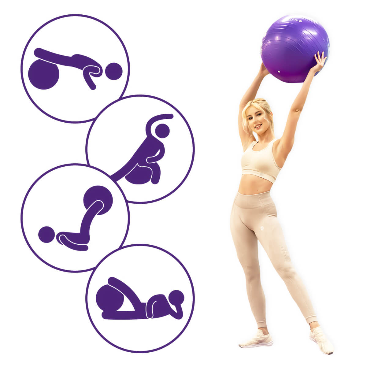 Wykorzystaj tę piłkę do pilatesu, ćwiczeń fitness, zarówno w domu, na zewnątrz, na siłowni, jak i w sali rehabilitacyjnej.