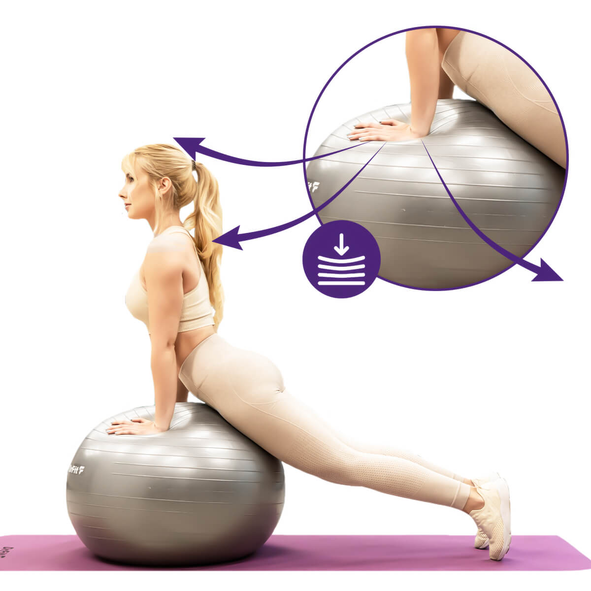 Wykorzystaj tę piłkę do pilatesu, ćwiczeń fitness, zarówno w domu, na zewnątrz, na siłowni, jak i w sali rehabilitacyjnej.