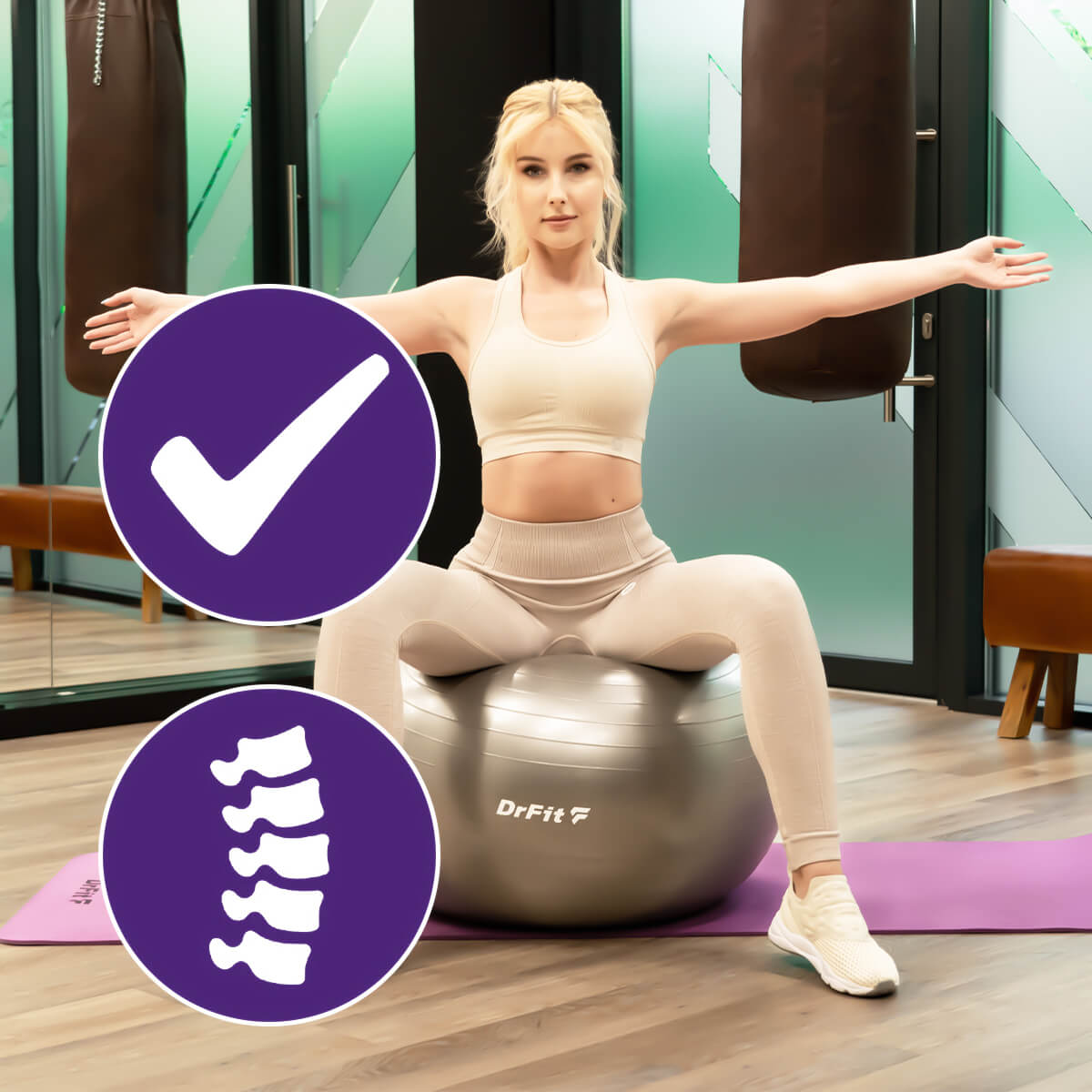 Regularne ćwiczenia z piłką gym ball DrFit pozwolą Ci zbudować silną, smukłą sylwetkę, odczuć radość z postępów i zyskać pewność siebie.