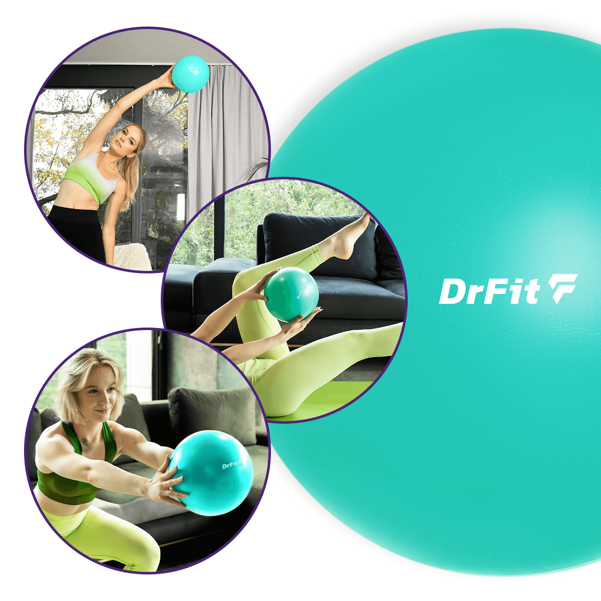 Treningi z wykorzystaniem małej piłki gimnastycznej DrFit angażują całe ciało, poprawiając kondycję, siłę i jędrność mięśni ramion, grzbietu, brzucha, ud i pośladków.