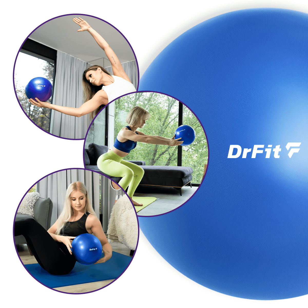 Treningi z wykorzystaniem małej piłki gimnastycznej DrFit angażują całe ciało, poprawiając kondycję, siłę i jędrność mięśni ramion, grzbietu, brzucha, ud i pośladków.