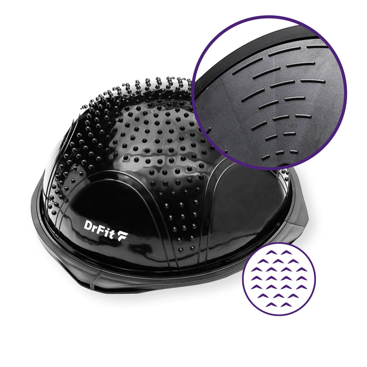 Trener równowagi posiada antypoślizgową powierzchnię, która zapewnia bezpieczne i stabilne ćwiczenia.