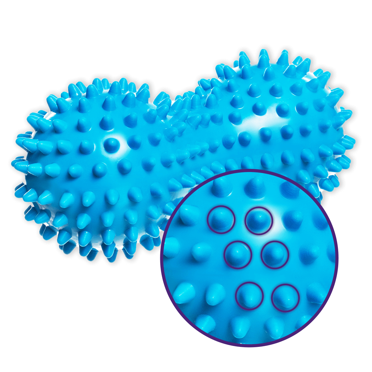 Podwójna piłeczka rehabilitacyjna z wypustkami sensorycznymi DrFit pozwoli Ci odkryć nową jakość regeneracji i relaksującego masażu.