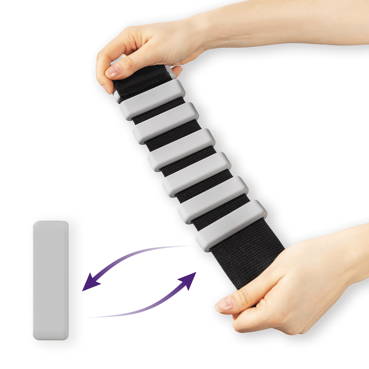 Elastyczne paski zapewniają stabilność, zapobiegając jednocześnie otarciom czy podrażnieniom skóry.