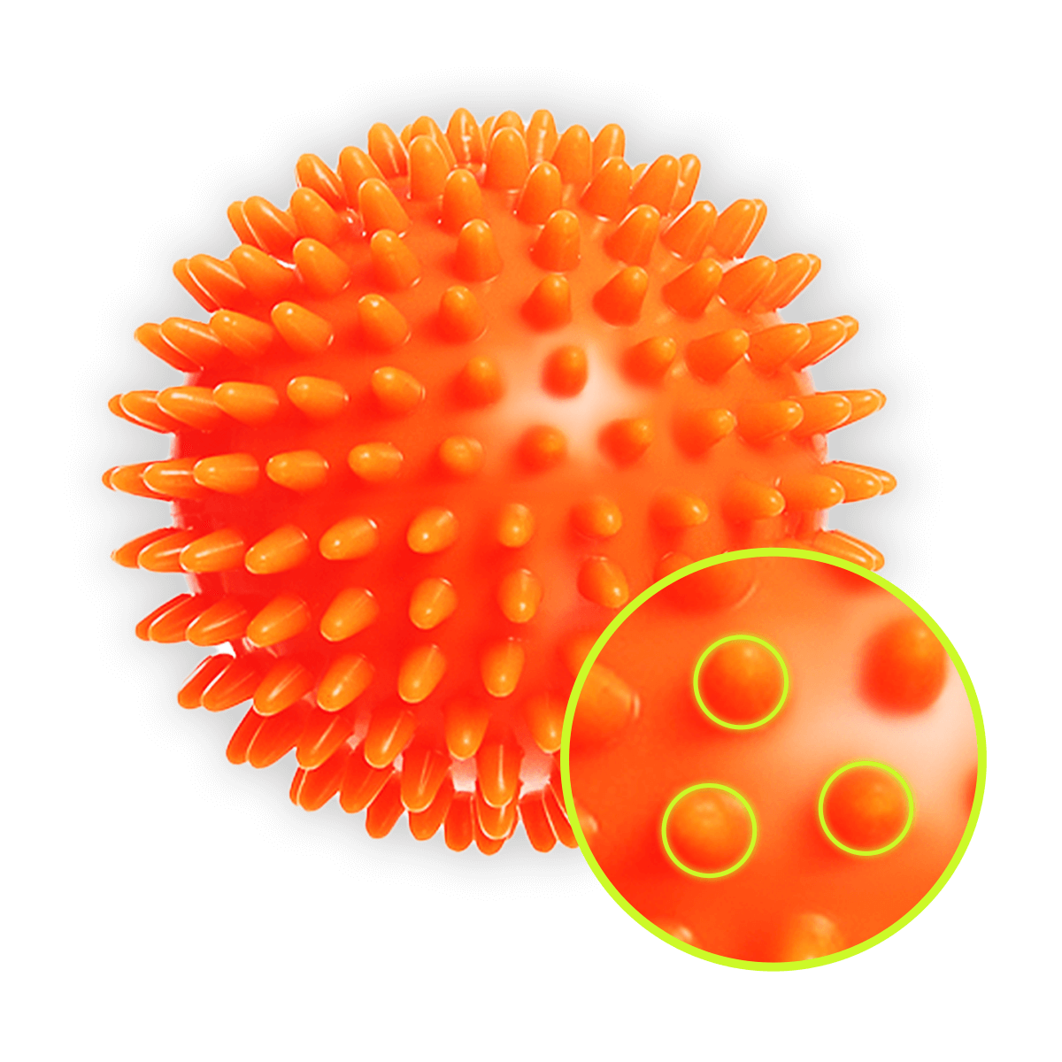 Specjalnie zaprojektowane wypustki na miękkiej piłce stymulują krążenie krwi i limfy, co sprzyja zdrowiu skóry.