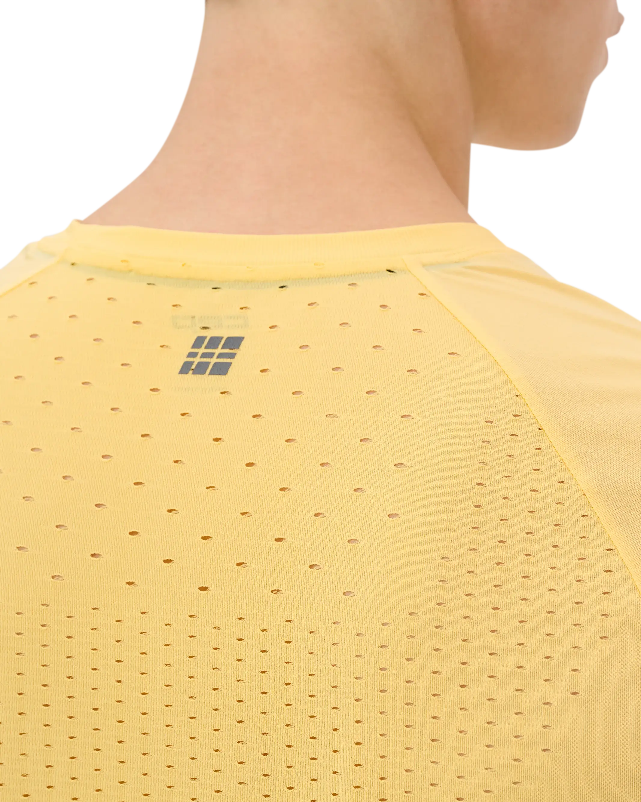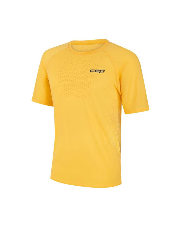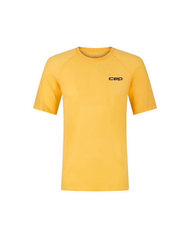 Męska koszulka sportowa do biegania na lato ultracienka z krótkim rękawem żółta CEP - idealna koszulka na długie dystanse i gorące dni
