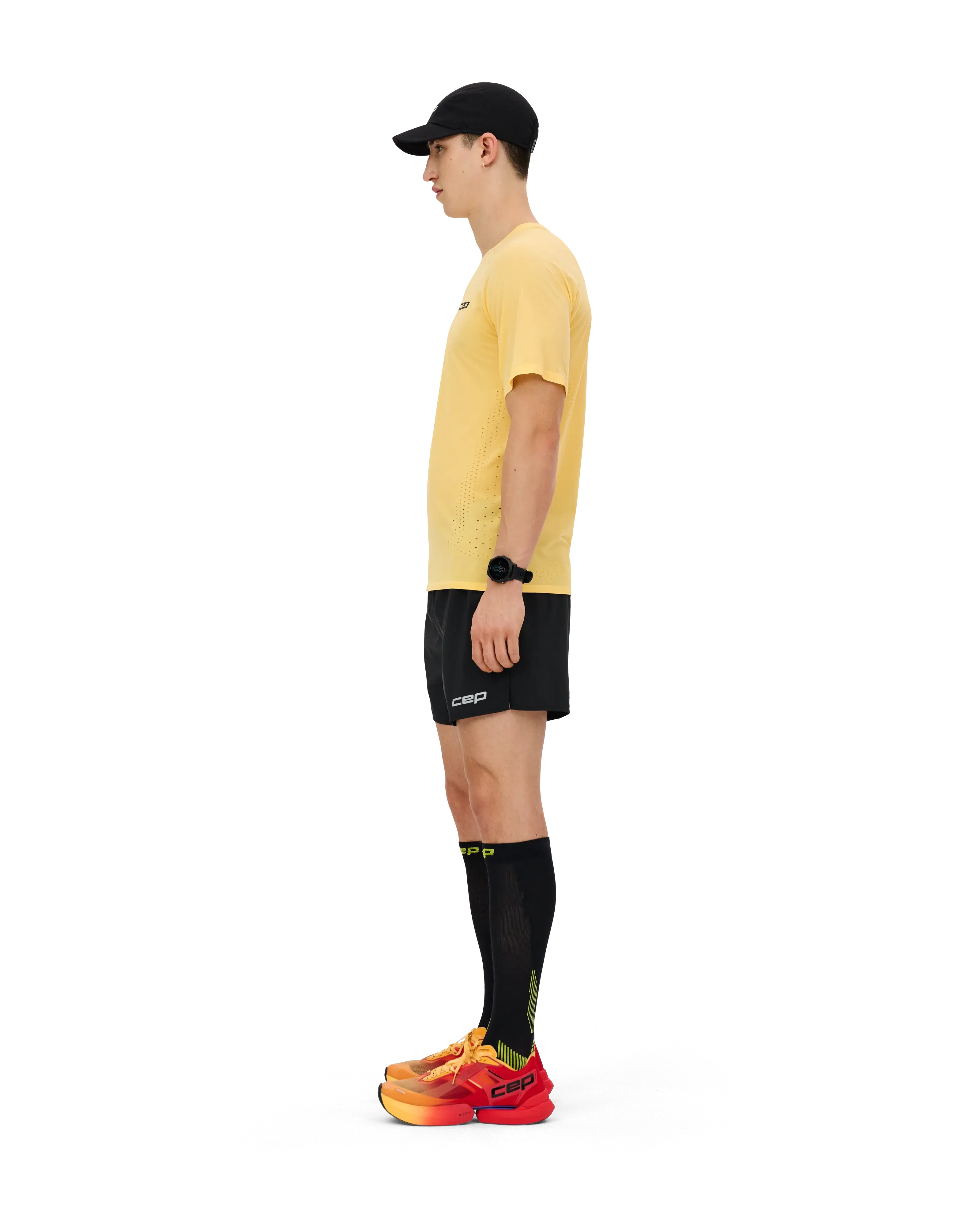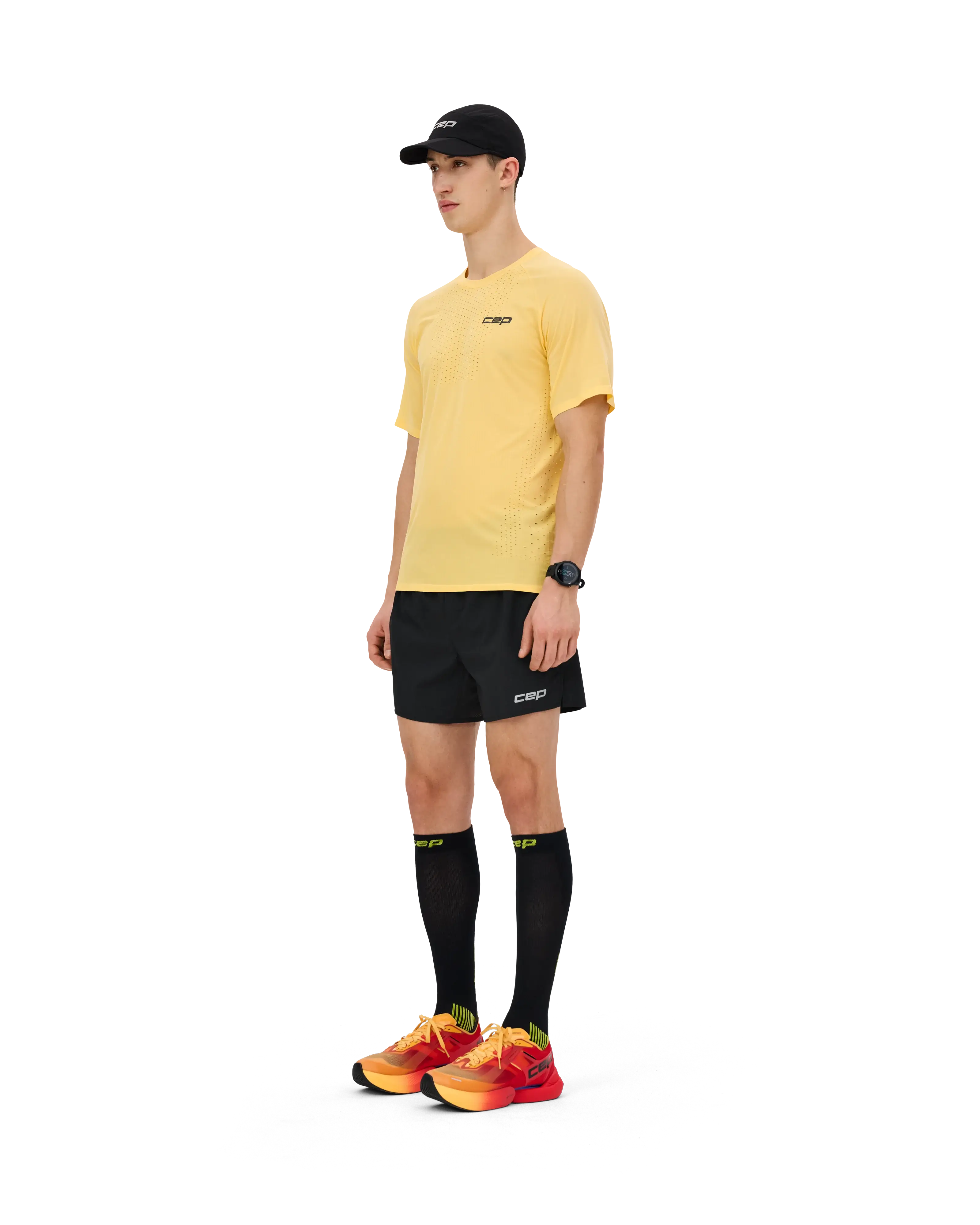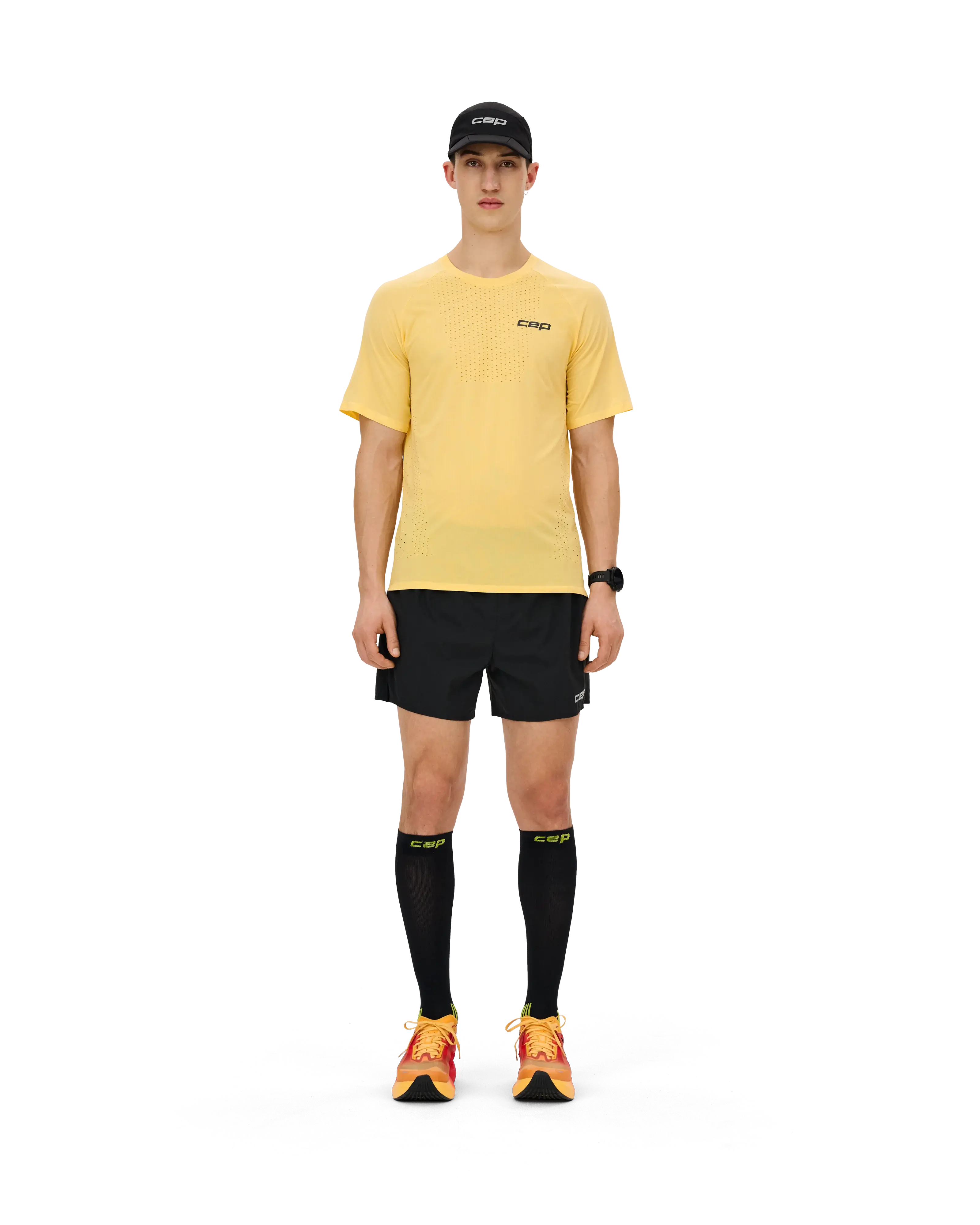 Męska koszulka sportowa do biegania na lato ultracienka z krótkim rękawem żółta CEP - idealna koszulka na długie dystanse i gorące dni