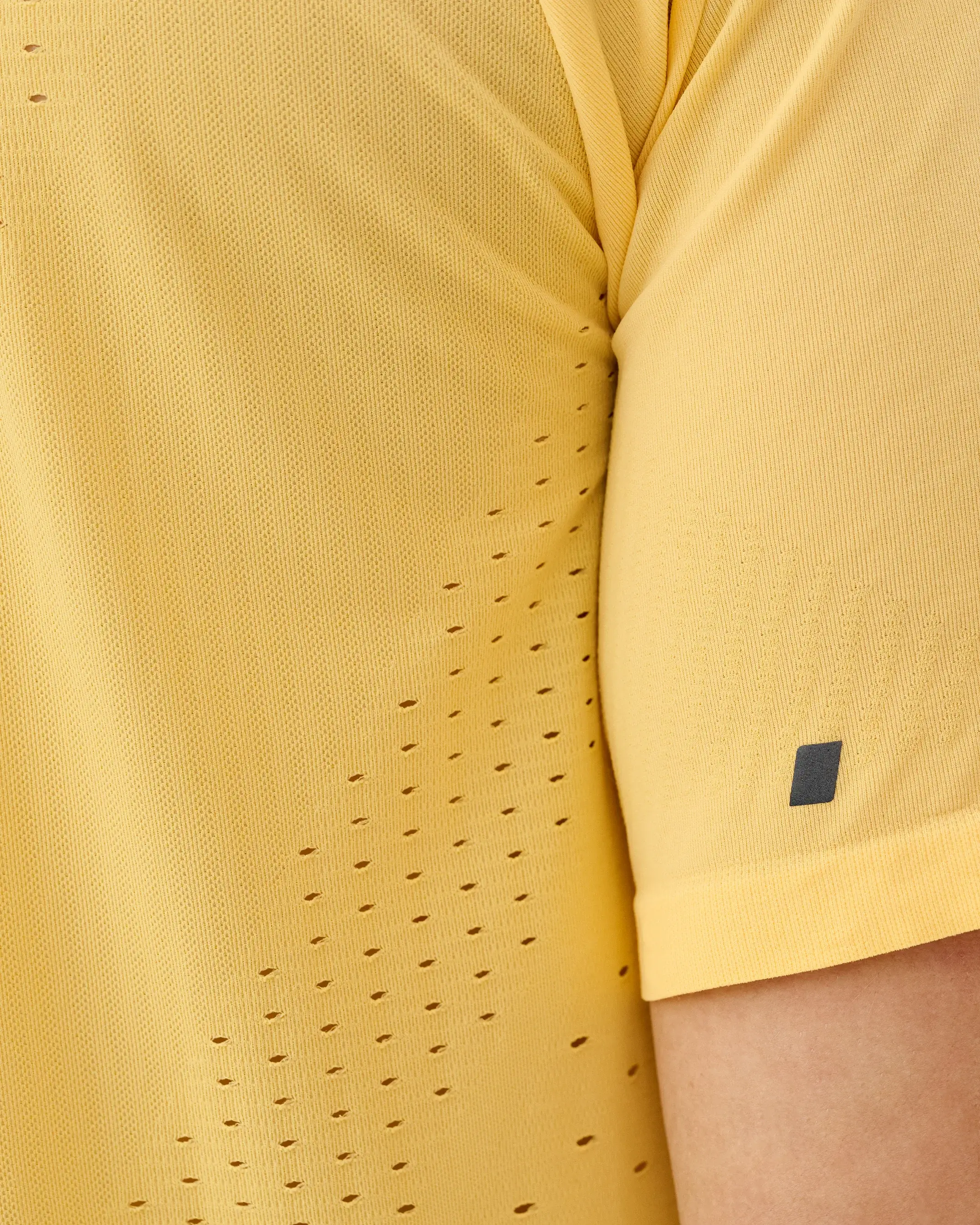 Ultralekka tkanina – minimalna waga materiału sprawia, że koszulka niemal nie jest odczuwalna na ciele, pozwalając w pełni skupić się na ruchu podczas biegu.
