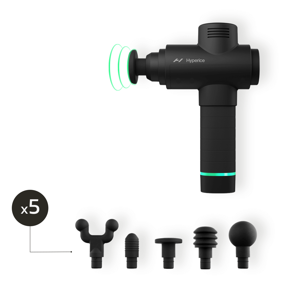 Zestaw 5 wymiennych końcówek – pięć końcówek o różnych kształtach, rozmiarach i stopniach twardości pozwala na precyzyjne dopasowanie masażu do indywidualnych potrzeb mięśni, niezależnie od tego, czy wymagasz delikatnej relaksacji czy głębokiego rozluźnienia.