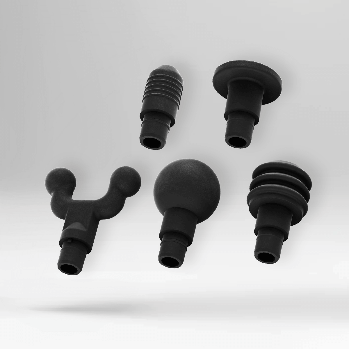 Każda z końcówek została zaprojektowana z myślą o różnych potrzebach mięśni — od delikatnego masażu relaksacyjnego po głęboką terapię powysiłkową.