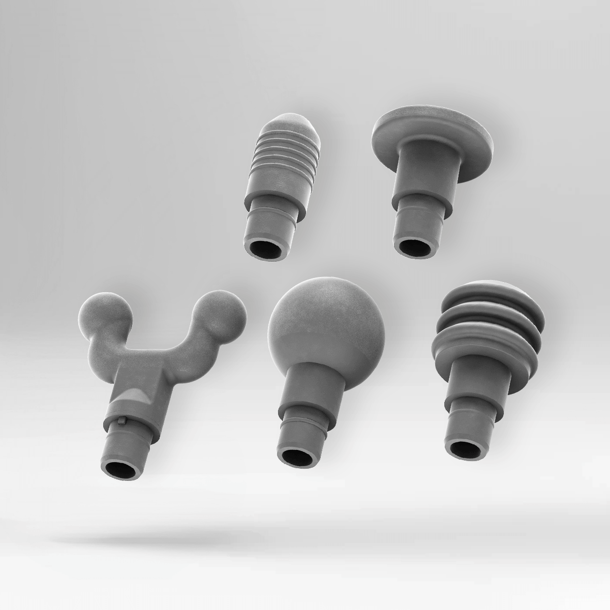 Każda z końcówek została zaprojektowana z myślą o różnych potrzebach mięśni — od delikatnego masażu relaksacyjnego po głęboką terapię powysiłkową.