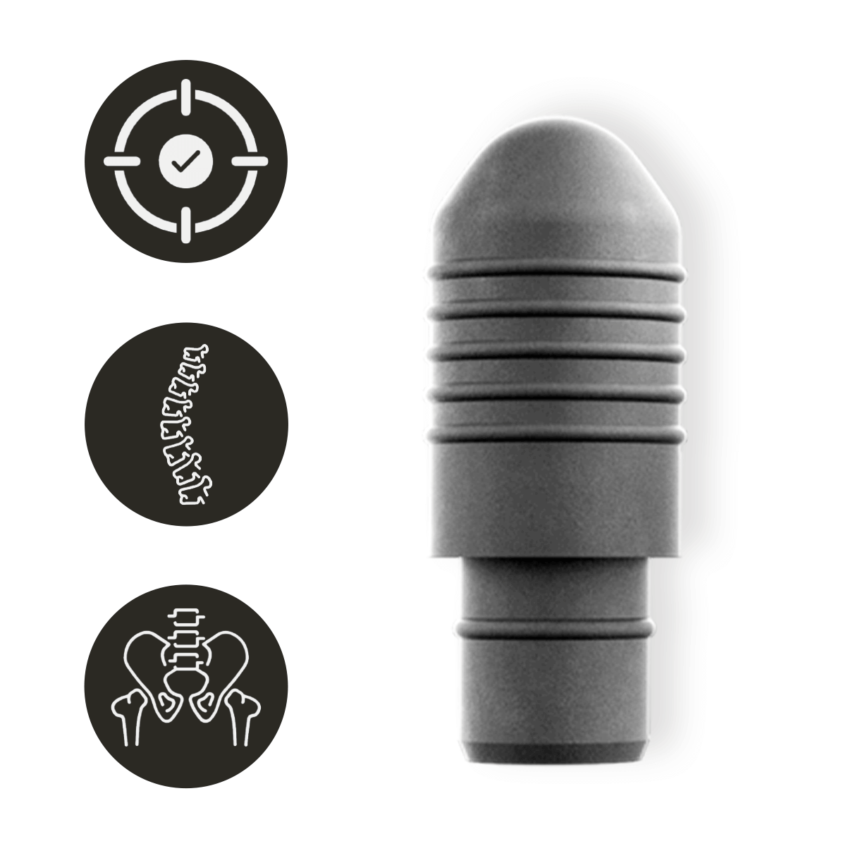 • Nasadki w formie pocisku, widełek, kuli, płaska i poduszkowa umożliwiają zarówno precyzyjną pracę na punktach spustowych, jak i masaż dużych partii mięśniowych.