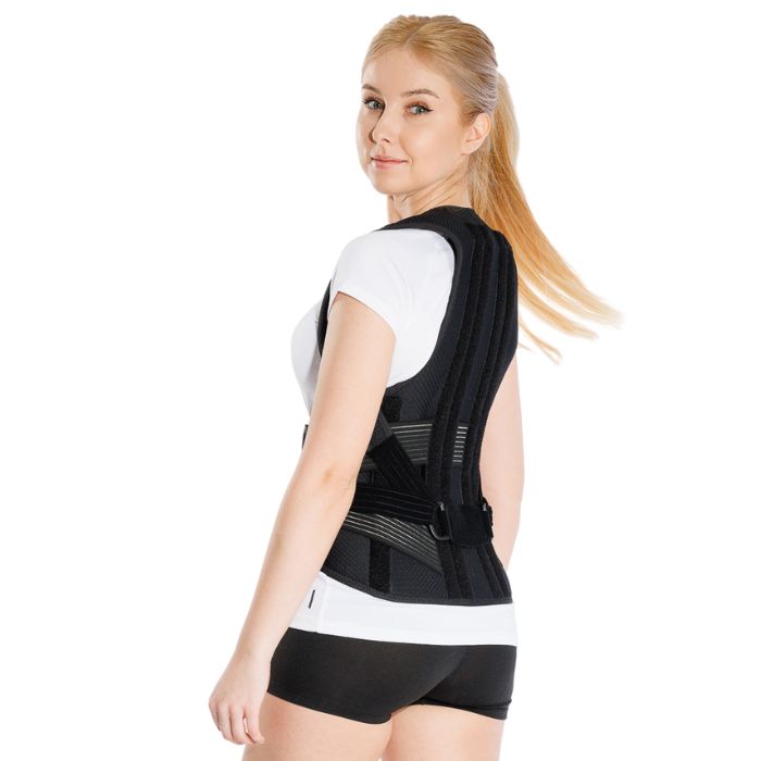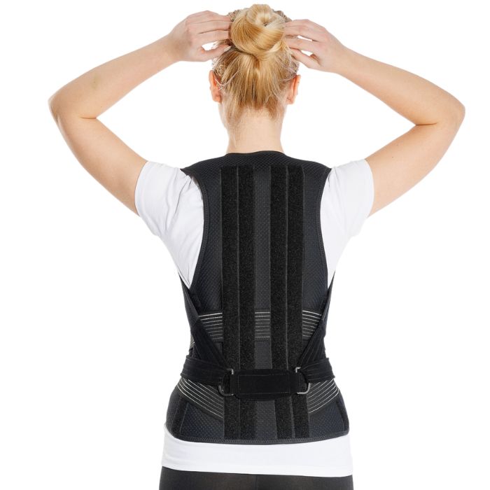 - pasy dociągowe z szynami bocznymi i dodatkowymi paskami elastycznymi- umożliwiają łatwe dopasowanie gorsetu do obwodu ciała. Owijają biodra i pas, wspierając kręgosłup i mięśnie.